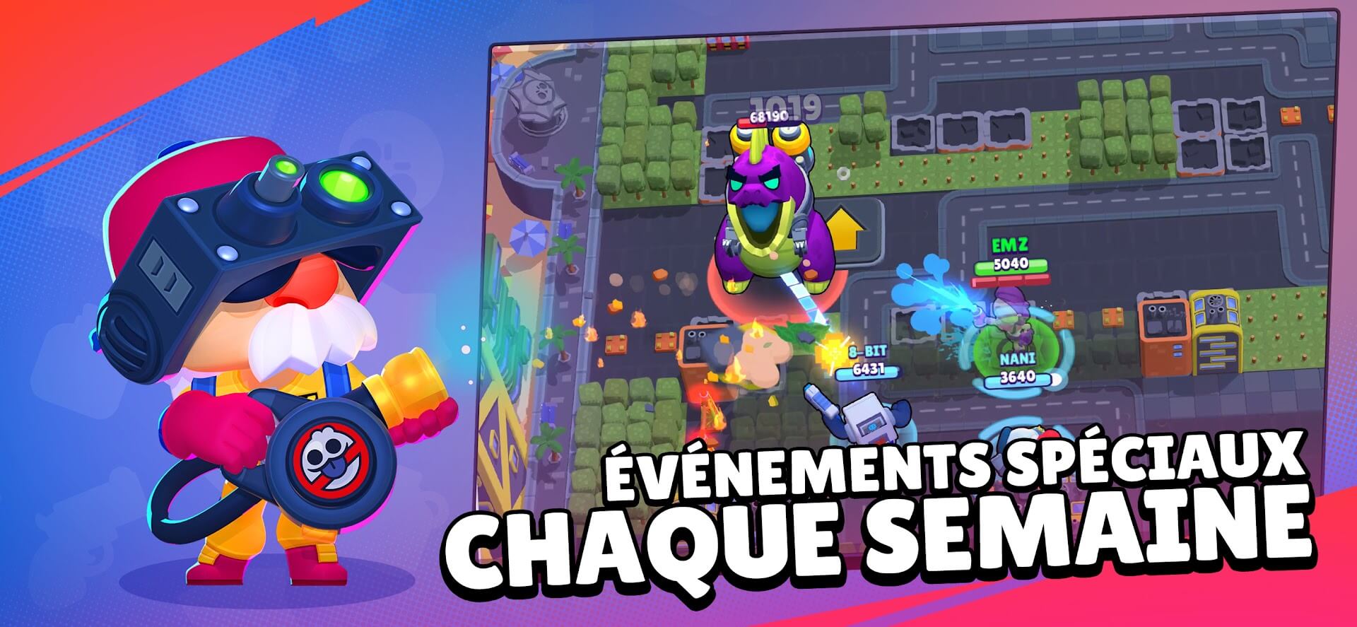 Ouvrez et révisez de nombreux bagarreurs avec des super pouvoirs, des commandes d'étoiles et des appareils étonnants. Rassemblez des skins spéciaux pour vous démarquer. Combattez dans diverses régions de l'univers secret de Brawl Stars !