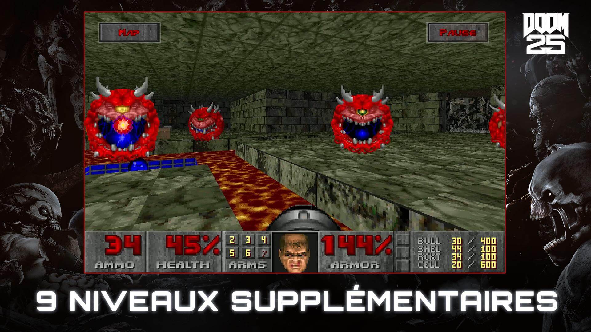 Doom sur mobile. C'est Bethesda qui a fait cette adaptation de doom sur android. Mais alors il y a du bon et du mauvais. On va dire que si vous etes fan de retro gaming ce jeu est pour vous car c'est vraiment la copie conforme de la version du jeu du tout premier doom. C'est la réédition du premier doom comprenant l'extension thy flesh consumed donc il y a 9 niveaux supplémentaires. Mais il est payant il coute un peu moins de 5 euros. Graphiquement on reste dans du portage ce n'est pas une réédition donc ca peut piquer ou donner mal au coeur pour certains. Prennez le si vous etes nostalgique ou si vous voulez decouvrir cette piece historique de l'histoire du jeux video.