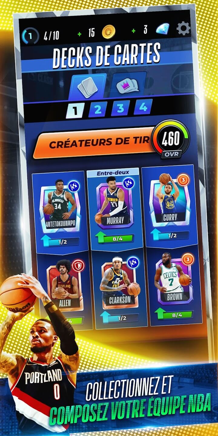 Voici NBA Clash , le jeu rapide et direct qui vous fera piéger plus que jamais sur le b-ball ! Entraînez vos adversaires avec des trajets rapides vers le conteneur, des tirs à 3 points à longue portée et des dunks dangereux. Au fur et à mesure que vous montez dans les listes de concurrents, ouvrez de nouvelles étoiles NBA à ajouter à votre groupe optimal. Définissez votre arrangement et exécutez le meilleur système pour submerger l'opposition et devenir un champion définitif de NBA Conflict !Laisser tomber des pièces de dix cents et fabriquer des canettesDéjouez et battez votre rival en utilisant l'énorme bibliothèque de zones d'activité de NBA Conflict. Volez par la sauvegarde et cassez quelques jambes avec la zone d'activité Have Open Chance de Jaylen Brown et vous en ferez une averse trois jours après jour! Révisez vos capacités de joueur, y compris les simulations de siphon du bourreau et les fondus enchaînés pour saisir les coups et les démolisseurs de bord! Juste le solide passer ici.Activer les capacités de base, y compris :• Giannis Antetokounmpo - Edge Wrecker : 100 % de chances que Dunks ou Blocks épuisent le rival le plus proche !• Stephen Curry - Shock All Activity : en une fraction de seconde, surprenez tous vos rivaux lorsque vous utilisez n'importe quelle zone d'activité !• Luka Doncic - Court métrage 1 : Collaboration : Les scores de n'importe où par n'importe quel partenaire font baisser le score de votre adversaire de 1 !• Nikola Jokic - Irrégulier : Incroyable : Décréter immédiatement une Capacité Unique Incroyable arbitraire !• Kevin Durant - Buteur au couteau : marquez de n'importe où pour affaiblir tout le groupe rival !• Joel Embiid - Amaze Region : Décalez tous les rivaux proches de ce joueur pendant 3 secondes !• Ja Morant - Postériseur de groupe à 100 % : donne une opportunité à 100 % à l'ensemble de votre groupe d'épuiser un rival sur un dunk !• Damian Lillard - Moins 1 buteur : marquez de n'importe où pour faire baisser le score de votre rival de 1 !• James Solidify - Et 1 : marquez de n'importe où et obtenez un point supplémentaire !Construire un groupe d'étoilesPlus vous jouez, plus vous ouvrez de Stars NBA. Régnez sur le bois dur dans une activité rapide à 3 contre 3 ! Maîtrisez les zones d'activité de votre joueur n°1 pour réaliser des hybrides de bourreaux et des dunks implacables. Ensuite, mettez votre groupe en ligne pour exercer son autorité sur tout le monde. Avec des façons infinies de mélanger et d'assortir votre arrangement, vous pouvez former une équipe définitive et ramener le titre à la maison !Sentez-vous comme si vous étiez sur le terrainNBA Conflict est une expérience de balle de style arcade qui vous place au cœur de l'activité, avec des joueurs et des mouvements que vous connaissez et aimez. Qu'il s'agisse d'un 1 contre 1 contre un compagnon ou un adversaire difficile, l'énergie du temps de jeu est ici disponible !Vaincre la liste des concurrentsAvec chacun des 30 groupes à parcourir, vous pouvez choisir votre équipe n°1 de la NBA et montrer au monde de quoi vous êtes fait. Ensuite, à ce moment-là, affrontez des joueurs du monde entier dans des matchs passionnants sur le Web. Démontrez que vous êtes vraiment incroyable en vous déplaçant au point le plus élevé de la liste des concurrents.Un jeu pour les vrais fans de ballonAffrontez différents joueurs du monde entier dans des combats rapides et stratégiques. Mettant en lumière des groupes et des joueurs passionnants de la NBA, NBA Conflict est un test définitif de vos informations et de vos capacités de balle.