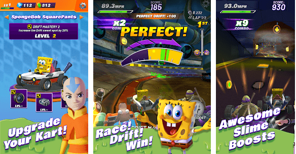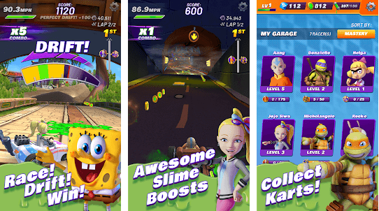Rassemblez des NICKELODEON KARTS qui ont une place avec SpongeBob SquarePants, Patrick Star, Sandy Cheeks, ainsi qu'Aang d'Avatar : The Last Airbender ; Leonardo, Raphael, Donatello, Michelangelo et Shredder des Teenage Mutant Ninja Turtles ; Tommy, Angelica et Reptar des Razmoket, Arnold Shortman de Hey Arnold ! ; Rocko de la vie moderne de Rocko ; JoJo Siwa, et bien d'autres !