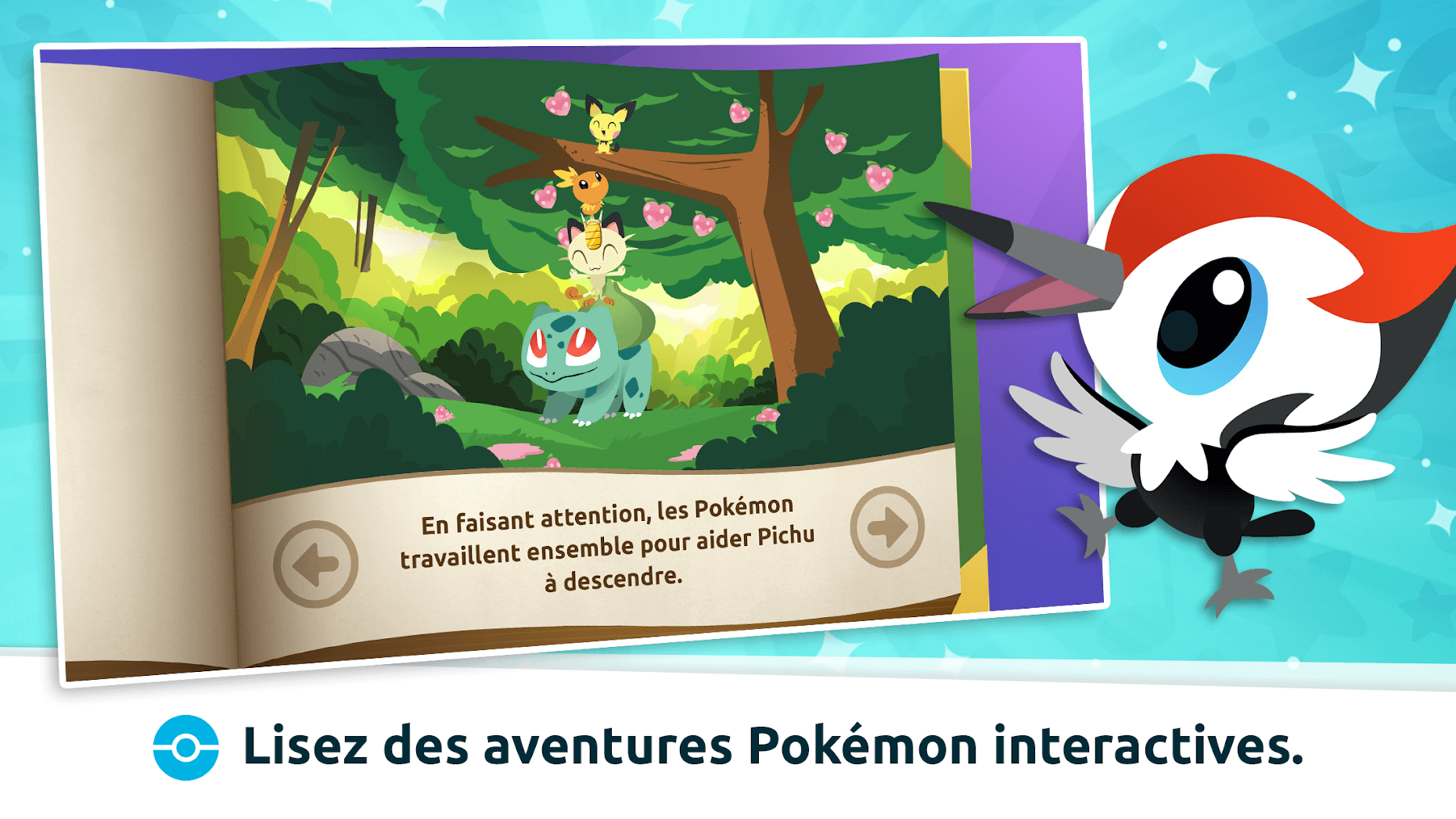 Pour aller avec le look extraordinaire des Pokémon dans Pavillon Pokémon, votre enfant peut les regarder jouer dans de nouvelles histoires illustrées. Rendez-vous dans la salle de jeux pour prêter attention à une histoire et voir les charmants Pokémon continuer à vivre de nouvelles expériences vivifiantes !